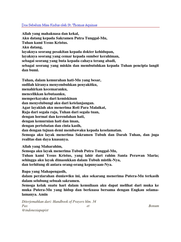 Doa Sebelum Misa Kudus Oleh St Thomas Aquinas
