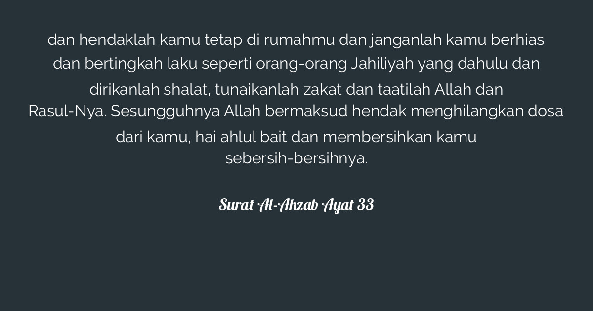 Surat Al Ahzab Ayat 33 / Surah Al Ahzab Verse 53 : Sudah sejauh mana interaksi anda dengan ayat ini?. Untuk menjadi istri maulanya yang bernama zaid ibnu harisah r.a. (boleh pilih lebih dari satu). Baca surat al ahzab lengkap bacaan arab, latin & terjemah indonesia. 1:00:33 irahlal indonesia 45 699 просмотров. Bedizen not yourselves with the bedizenment of the time of ignorance.