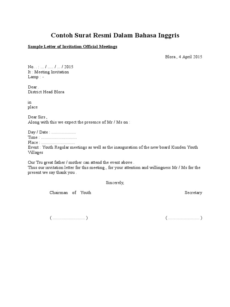 Contoh Surat Resmi Dalam Bahasa Inggris Serta Terjemahannya Surat Rasmi E from dentmasoci.com Biasannya surat ini dibuat oleh suatu instansi baik swasta maupun negri seperti sekolah, kantor pemerintahan maupun perusahaan swasta. Surat resmi perusahaan ini masih banyak digunakan untuk melakukan kegiatan bisnis. Setelah kita membahas terkait contoh surat penawaran yang merupakan bagian dari surat resmi. Surat resmi ialah surat yang biasanya dikeluarkan oleh pihak instansi, sekolah, perusahaan itulah beberapa bagian yang terdapat pada surat resmi, setelah anda memahami penjelasan diatas, maka selanjutnya yaitu bisa langsung melihat beberapa contoh surat resmi dibawah ini. Adapun contoh dari surat resmi adalah surat lamaran kerja, surat pengunduran diri, surat penawaran dan yang lainnya. Contoh surat resmi perusahaan doc. Bagi kalian yang masih bingung mengenai surat resmi. Meski tak dapat dipungkiri bahwa jenis surat tersebut tetaplah sama meskipun untuk perusahaan atau instansi pemerintahan, namun urgensi surat menjadikan keduanya sedikit berbeda.